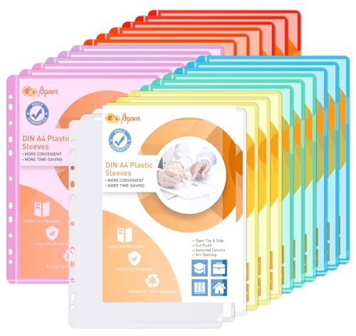 Agoer 24 stycken arkivfodral A4 öppna på sidan, insynsfodral A4 för arkivering, färgglada med 11 hålkant, 8 färger, genomskinliga fodral för förvaring av papper för kontor, skola