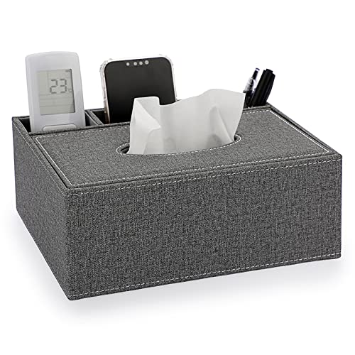 BTSKY Linne hushåll kontor rektangulär näsdukslåda med fjärrkontroll förvaring organiseringslåda – elegant och elegant hem servetthållare skrivbord papper hållare skrivbordsförvaring organiserare