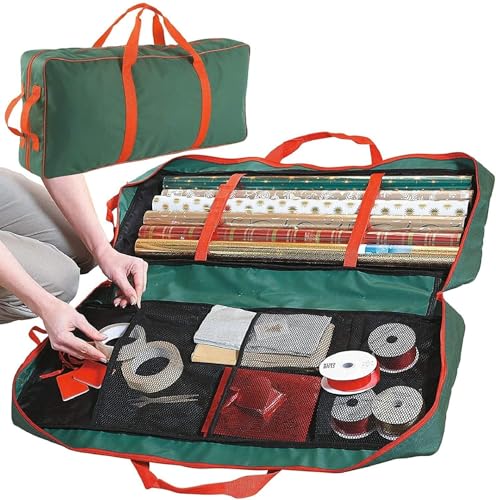 Ram® Jul omslagspapper förvaringsväska tyg presentförpackning förvaring (82 x 34 x 13 cm) för papper, etiketter och rosetter