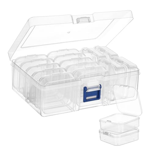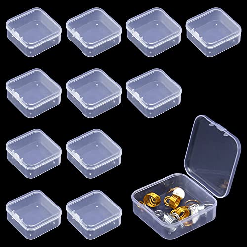 Rebanky 12 stycken förvaringslådor, små transparenta plastförvaringslådor, transparenta små plastlådor, miniförvaringslåda för pärlor, smycken, smådelar (55 x 55 x 20 mm)