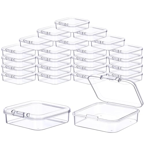 Belle Vous Små Klara Förvaringslådor i Plast med Gångjärn Lås (24 Pack) - 9,4 x 9,4 x 2,8 cm - Mini Tub Lådor för Piller, Pärlor, Smycken & Hantverksobjekt
