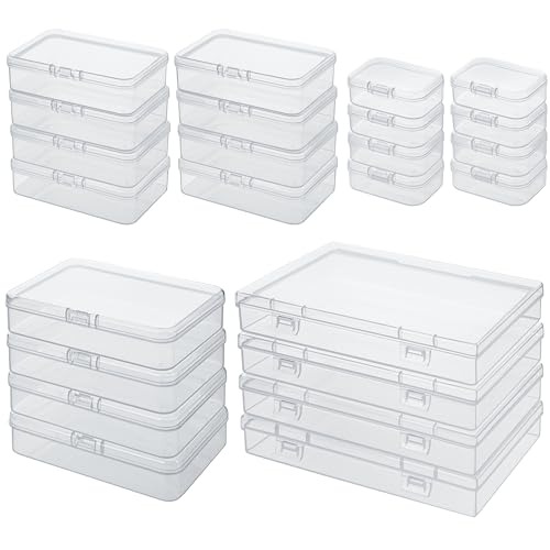 Winter Shore Rektangulära Plastbehållare [24-Pack] - Genomskinliga Förvaringslådor i Olika Storlekar med Gångjärnslock - Tomma Behållare för Konstmaterial, Pärlor, Hantverk, Små Föremål & Accessoarer