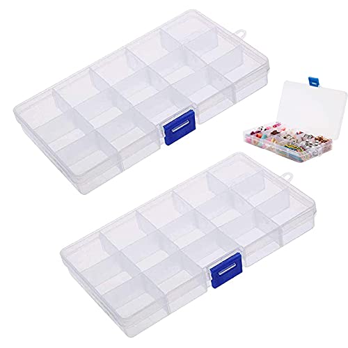 HAOBIN plastsorteringslåda sortimentslåda stabil justerbar smyckesorganisatörlåda justerbar sorteringslåda av plast med 15 fack och lock, förvaring av skruvar, pärlor, örhängen, 2 stycken