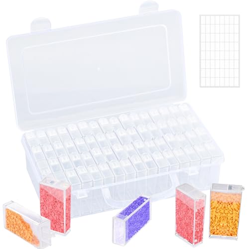 64 stycken 5D diamantmålning förvaringslåda med klistermärken, diamantmålning tillbehör förvaringslåda, plast pärlor nagelkonst förvaring behållare målning tillbehör gör-det-själv pyssel smycken
