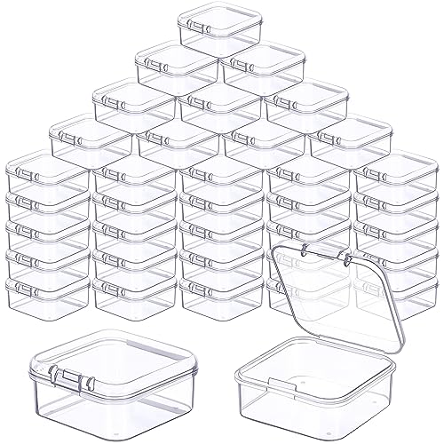 Prmape Förvaringslådor med lock, 50 stycken, liten storlek, 3,5 x 3,5 x 1,8 cm, rektangulär, tom mini-förvaringslåda, liten, av klar plast, för förvaring av pärlor, behållare/låda för pysseltillbehör