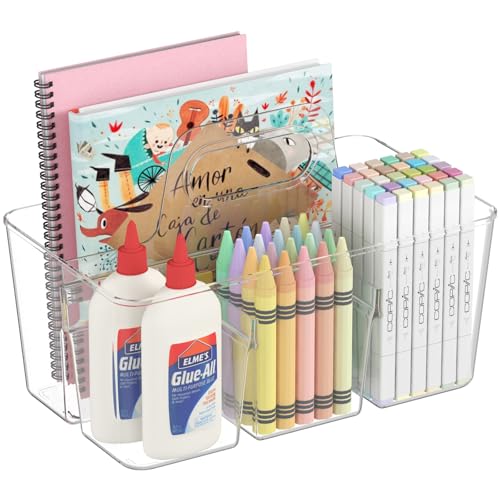 Lifewit organisatör i plast för förvaring av konstnärsmaterial, uppdelad förvaringskorg med handtag för hantverkstillbehör, smink, pennor, kritor, borstar, hårprodukter, duschkorg, Transparent, 1pack