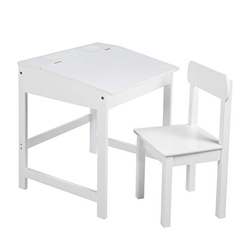 Roba Skolskrivbord med stol, barnbord, stolset, skrivbord med uppfällbar bordsskiva med dämpningsbeslag för pojkar och flickor, med frästa spår för förvaring av pennor
