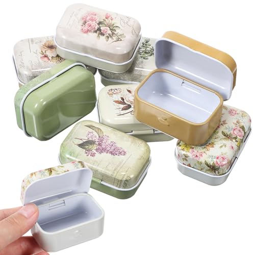 Alipis Vintage smyckeskrin set med 8 stycken dekorativa plåtburkar av tennplåt med lock perfekt för förvaring av smycken och små föremål 6 x 4 x 2,5 cm
