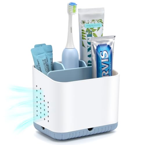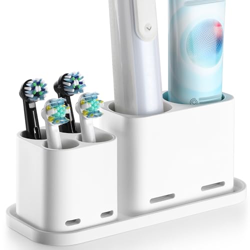 Tandborstorganisatör familj multifunktionell vit tandborsthållare med dräneringshål, avtagbar badrum tandborststativ tandborste förvaring för elektriska tandborstar och tandkräm