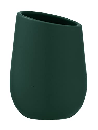 WENKO Tandborstkopp Badi, tandkopp av högkvalitativ keramik med matt yta, tandborstkopp för förvaring av tandborste och tandkräm, perfekt för badrum & gästtoalett, Ø 8 x 11 cm, mörkgrön