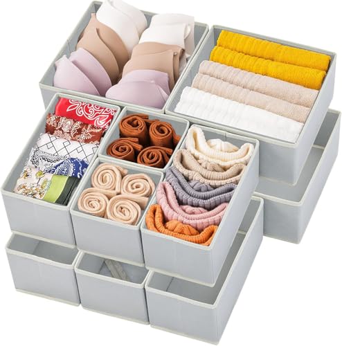 Kongming 12 st lådor organisering kläder tyg förvaringslådor underkläder förvaringslådor för skjorta, strumpor, behåar, knytband, halsdukar, vikbara tvättbara babykläder i garderoben, sovrum (ljusgrå