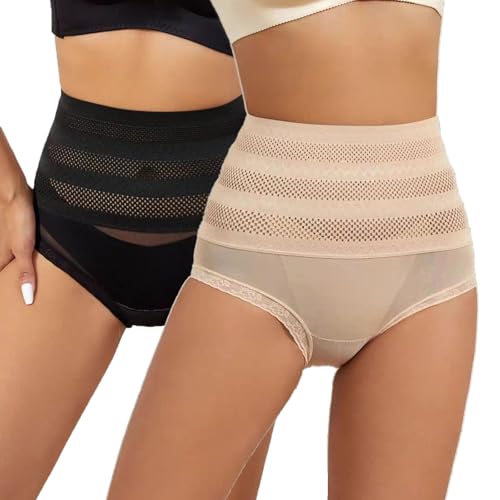 SOLO ACTFIT Trosor Kvinnor Trosor Magduk Förvaring Underkläder Hög Midja Stringtrosor Shapewear Slimming Mage Flat Mage Slip Shapewear Elastisk Sömlös Culotte Sheer Mesh, Svart x 2, M
