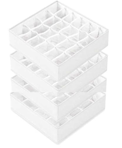 SONGMICS Underklädesorganisatör, set om 4, 80 fack (2 x 16 + 2 x 24), lådorganisatör, vikbar, garderobssystem, förvaringslådor, strumpor, underkläder, slipsar, gräddvit RUS011W01