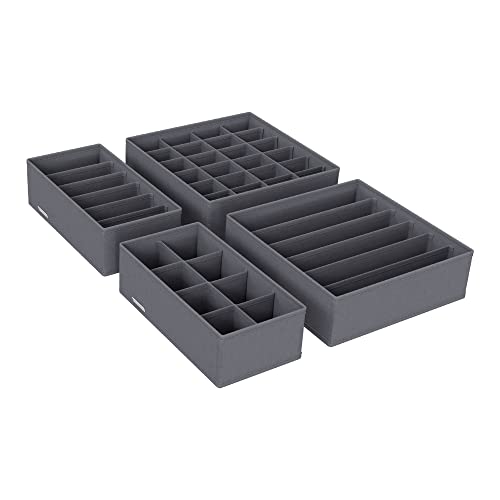 Simple Houseware 4-pack lådorganiseringsset – garderobsavdelare för underkläder, strumpor, behåar, halsdukar, slipsar – vikbara, non-woven, förvaringslådor, mörkgrå