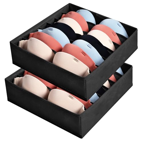 AiQInu Organisatör för bh-lådor, set med 2 hopfällbara underklädeslådor med 7 fack, förvaring av underkläder, garderobsorganisatör för förvaring av bh, strumpor och slipsar