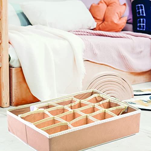 Förvaringslåda 35 x 27 x 9 cm, 16 fack, Lådfällbar, arrangörer för underkläder, förvaringslådor för strumpor, behåar, näsdukar (Senape)