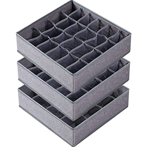 AOKITO Förvaringslådor för strumpor och underkläder, 24 celler förvaringslådor, vikbara lådor, för förvaring av halsdukar, slipsar, bälten och andra tillbehör (3 stycken, grå)