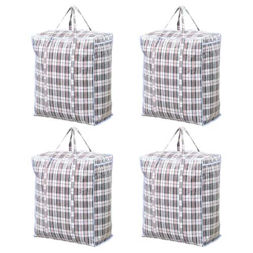 Dokeno Set med 4 stora 107L förvaringsväskor med dragkedja, tillverkade av slitstark och slitstark polypropen, återanvändbar med handtag – perfekt för flyttning, förvaring, underkläder