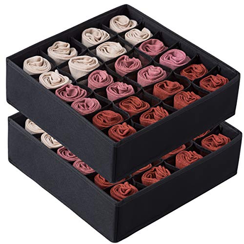 Qozary 2-pack strumpor underkläder låda organiseringsavdelare, 24 celler eller 16 celler hopfällbara skåp garderob organisering förvaringslådor för kläder, strumpor, underkläder, slipsar (svart, 24 +