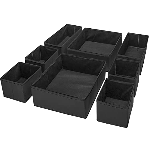 Lifewit Garderobsorganiserare Lådor för Underkläder Avdelare, 8 Delar Tyg hopvikbar Organiserare och förvaringslådor för trosor, bh:ar, underkläder, Svart