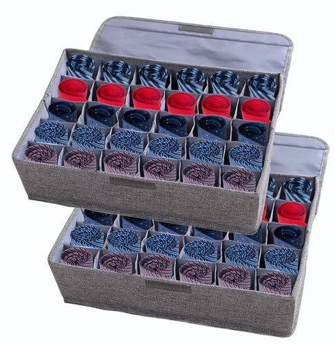 AARAINBOW 2-pack underkläder strumpor slipsar förvaring organisatör med lock vikbar garderob låda organiserare 60 celler, tyg låda garderob avdelare förvaringslådor för halsdukar och underkläder (30