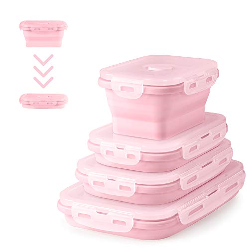 Virklyee Matförvaringsbehållare i silikon med lock, 4-pack lunchlåda silikonbehållare Enkel förvaring,utomhus picknickbox(Rosa)
