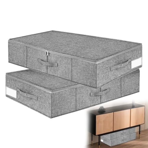 Uppsättning av 2 undersängslådor med lock med sidor och golvförstärkning, 3 handtag, vikbar tyglåda 12 cm höjd, sänglåda förvaring, kuddlåda utomhus vattentät, praktisk undersängbyrå
