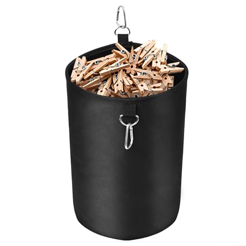 AiQInu Tvättklämmapåse med stängningssnöre, förvaring för upp till 200 klämmor, klämpåse för tvättklämmor inomhus och utomhus förvaring, svart, cylindricity