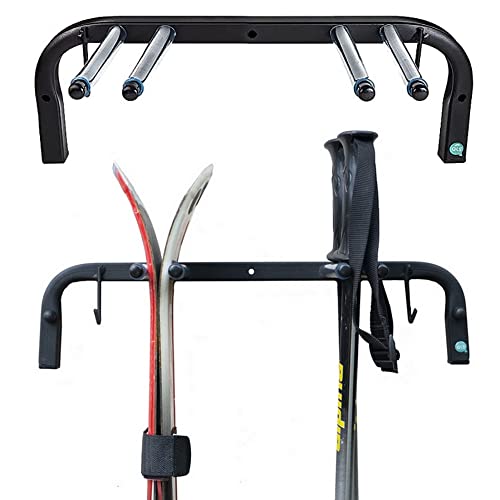 QLS Skohållare för vägg skidhållare för 2 par 64 cm nordisk promenadkäppar skidhållare krokstång med skyddande gummibeläggning för platsbesparande förvaring WB2