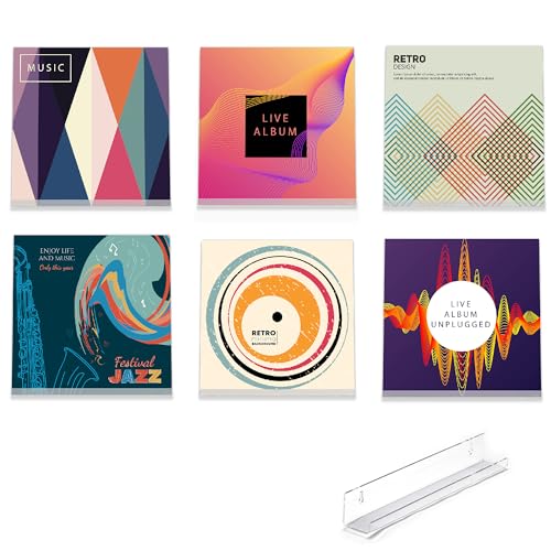 Gadgy Vinyl vinylskivor vägghållare 6 stycken – vinylskivor förvaring akryl – vinylskiva dekoration transparent – vinylväggfäste med 2 monteringsalternativ 30,8 x 4,2 x 4,3 cm