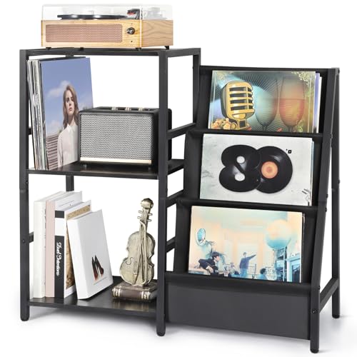 Vinyl Förvaring Skivspelare Bedside Table ändbord med 3-stegs vinylskiv Förvaring, Skivspelar Bord upp till 200 Album, Skivspelar Ställ för Vinylskivor, Vinyl Skiv Hållar för Vardagsrum (Svart)