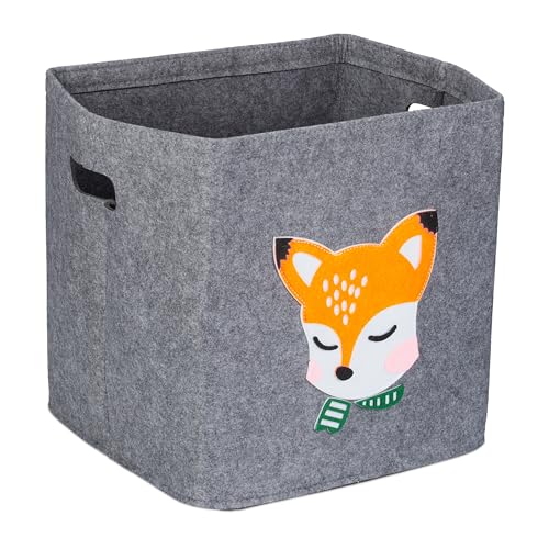 Relaxdays Förvaringsbox räv, tyglåda för barn, av filt, vikbar, leksakslåda, H x B x D: 33 x 33 x 33 cm, grå