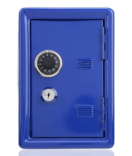 Barns kassaskåp, Mini Key-förvaringslåda, Spargris för barn, Robust järnlåda, Inbyggd dragbar förvaringsbox, myntfackdesign på toppen, Barngåva(blå)