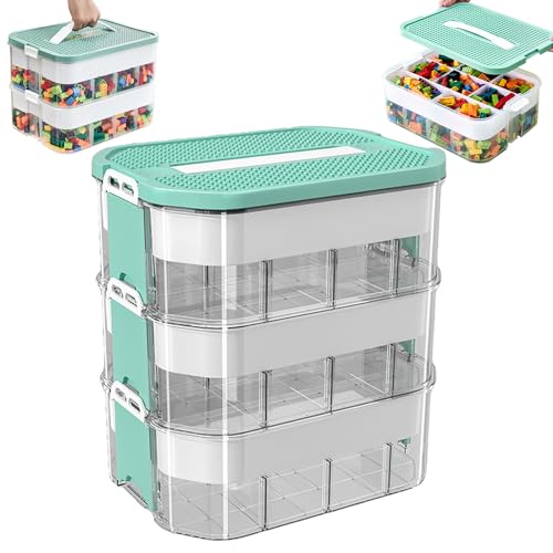 ZPSNDP Lego plastlådor, 3-lagers förvaringsbox för barn, stapelbara förvaringslådor med lock, födelsedagspresent, rörlig present (grön)