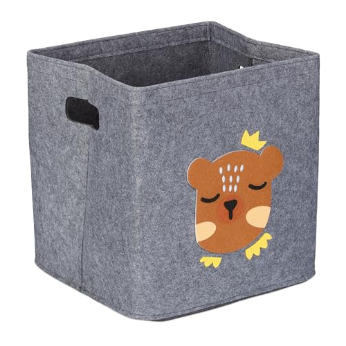 Relaxdays Förvaringsbox Björn, tyglåda för barn, av filt, vikbar, leksakslåda, H x B x D: 33 x 33 cm, grå