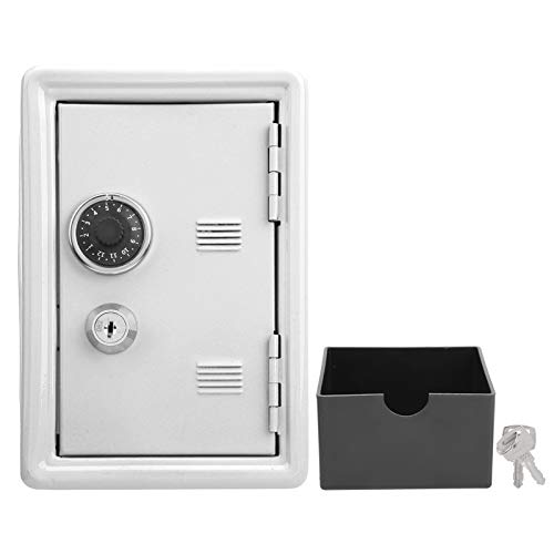 Barns kassaskåp, Mini Key-förvaringslåda, Spargris för barn, Robust järnlåda, Inbyggd dragbar förvaringsbox, myntfackdesign på toppen, Barngåva(vit)