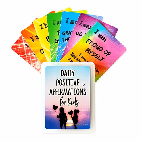 Dagliga positiva bekräftelsekort för barn, mindfulness-aktiviteter, självförtroendebyggande, tillväxttankesätt, positiv attityd, 54 glansiga kort i hård förvaringsbox, älskad av lärare, föräldrar och