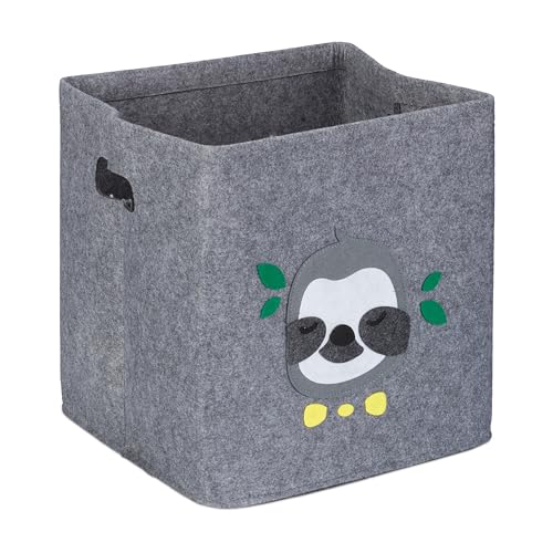 Relaxdays Förvaringsbox sengångare, tyglåda för barn, tillverkad av filt, vikbar, leksakslåda, H x B x D: 33 x 33 cm, grå