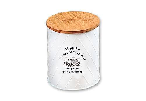 Kesper Förvaringsburk i metall med lock av bambu, lantlig stil, Ø 17,3 x 18 cm, rund