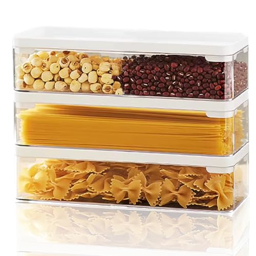 AKOLAFE 3 stycken spagettiförvaring 2 l matförvaringslåda, förvaringsburk med lock, lufttäta förvaringsbehållare PET pastabehållare, kylskåp, arrangör för spaghetti, flingor, spannmål