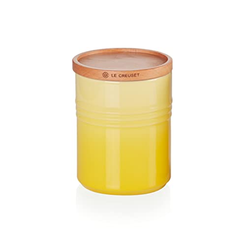 Le Creuset Stengods medelstor förvaringsburk med trälock, stengods, 540 ml, 10 cm, Soleil
