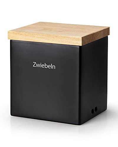 Continenta Keramisk förvaringsburk med trälock, 18 x 15,5 x H 20,5 cm, ventilationshål och utbytbar märkning, lufttät, svart