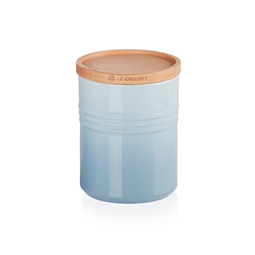 Le Creuset Stengods medelstor förvaringsburk med trälock, stengods, 540 ml, 10 cm, Azure, 60825542200099