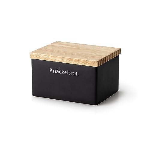 Continenta keramisk knäckebrödburk 17,5 x 13,5 x H 11 cm, med trälock, förvaringsburk för knäckebröd, knäckebrödlåda med skrift knäckebröd