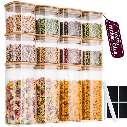 Withosent WitByxt förvaringsburkar glas set om 6, förvaringsburkar med lock, fyrkantig, stor glasbehållare förvaringsburk med trälock, förvaringsburkar kök för pasta, flingor, bönor