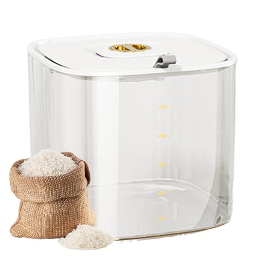 ARSBORUI Risförvaringslåda, 5 kg risförvaringsbehållare med lock, lufttät, fuktighetsbehållare rislåda, spannmålsbehållare, kök, förvaringsburkar för ris, mjöl, nötter (vit)