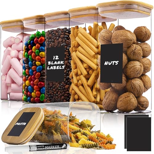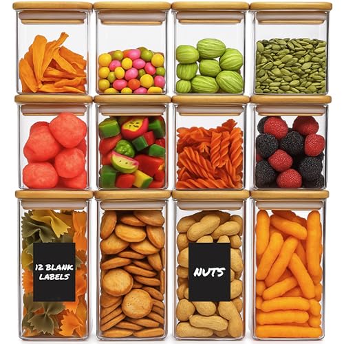 LIBWYS Förvaringsburkar med lock, uppsättning om 12 fyrkantiga förvaringsburkar glas - i 2 storlekar: 1 000 ml 600 ml - kök lufttäta förvaringsburkar glasbehållare