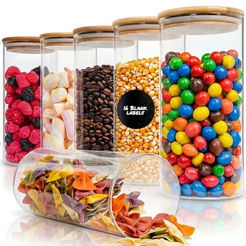 Deco Haus® Förvaringsglas med Lock, 6-set + Etiketter [LUFTTÄT] - För Müsli, Cornflakes, Spaghetti - Förvaringsburkar i Glas med Lock - Förvaringslåda Kök - Förvaringsglas 6x1600ml