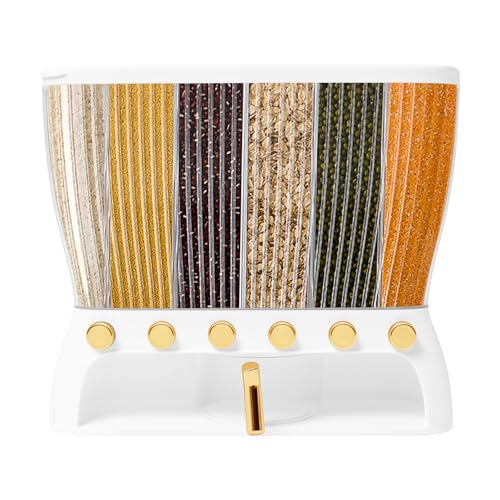 SHZICMY Müslidispenser väggmontering, 6 rutnät, flingdispenser, resedispenser, frukostdispenser, förvaringsburkar, kök, delade torrfoderbehållare med 5 avtagbara fack och ritratt