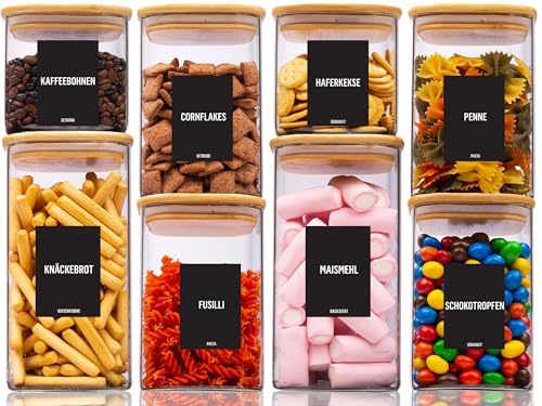 Deco Haus® Förvaringsglas med Tätslutande Lock + Etiketter [8-pack KOMBISATS] - För Müsli, Cornflakes, Spaghetti & co. - Förvaringsburkar i Glas med Lock - Förvaringsglas - Förvaringslåda Kök